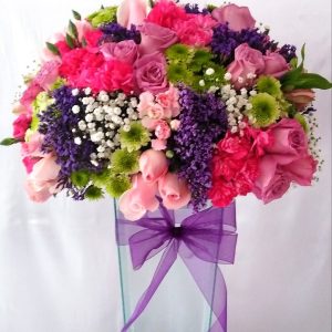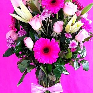 JARRON CON 50 ROSAS ROSAS Y LILIS GDE.
