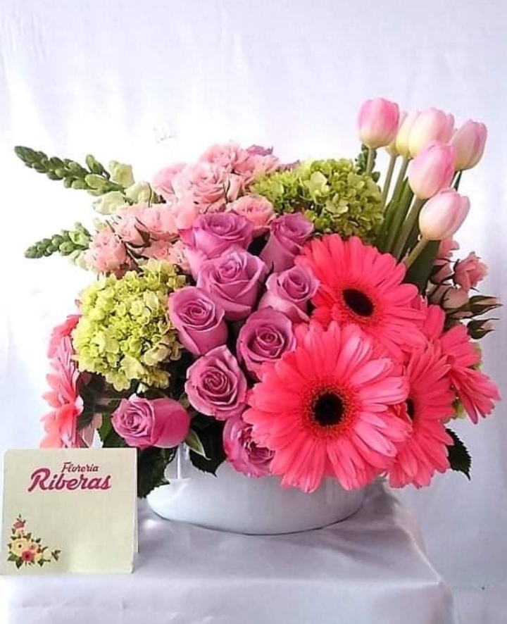 ARREGLO BASE CERAMICA SURTIDO TULIPANES 013