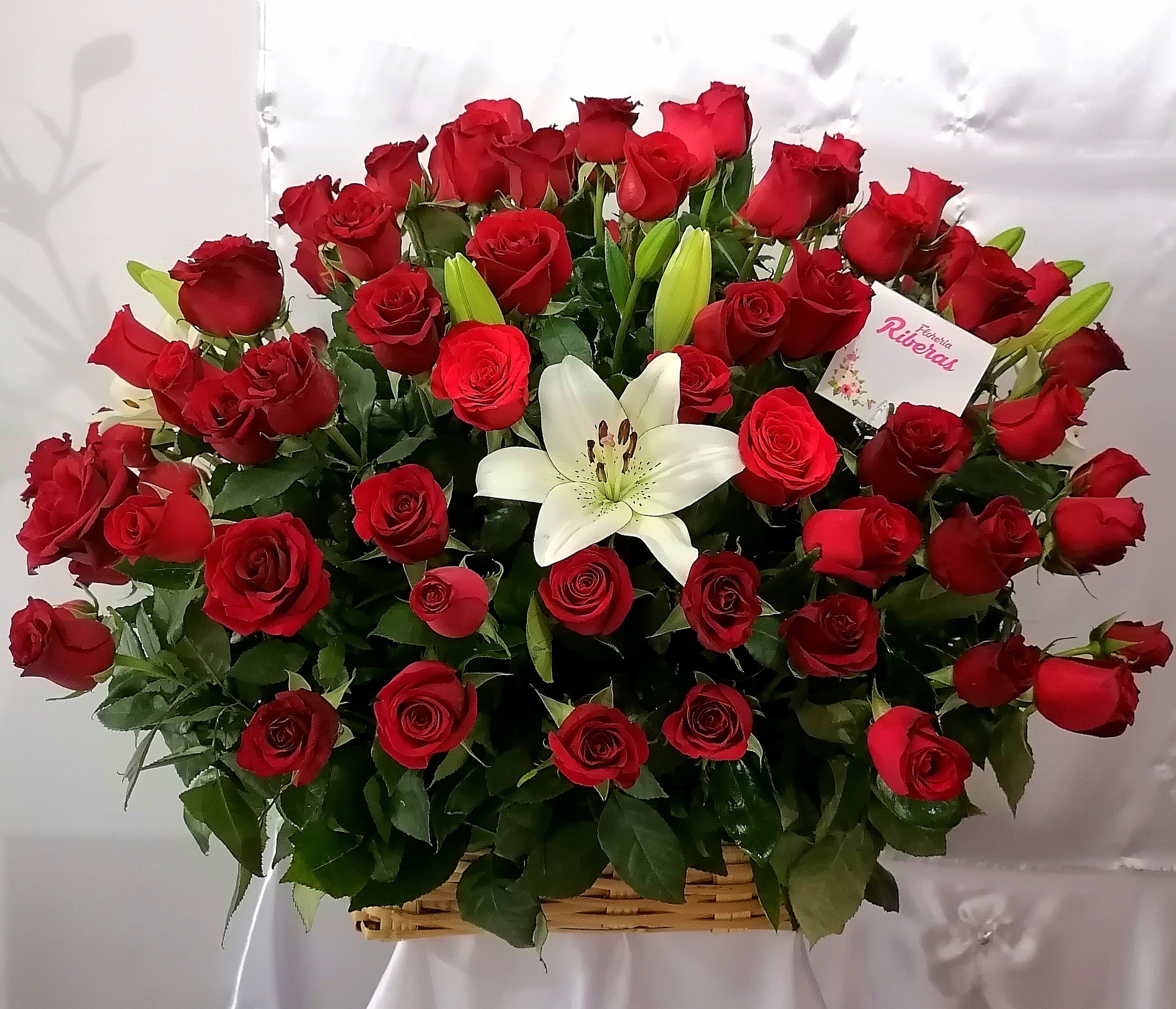 CANASTA CON 100 R. ROJAS REDONDA Y LILIS